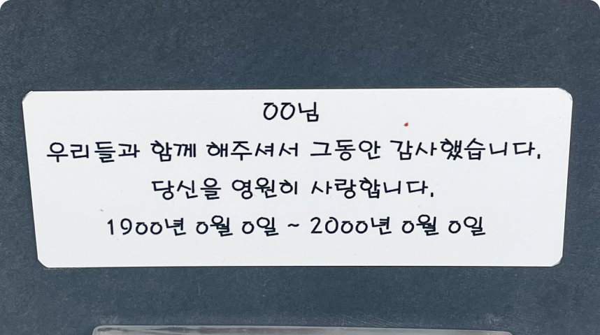 사진/문구 전사 : 오석 타일에 고인 정보 전사
