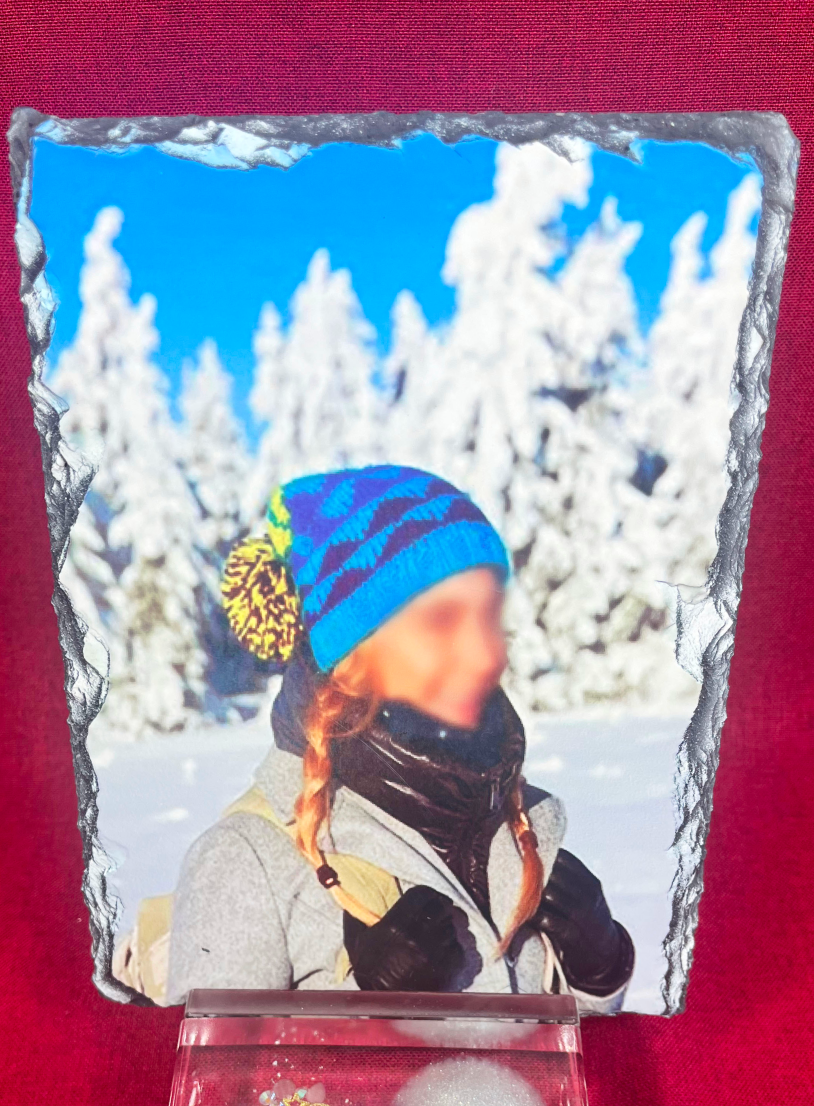 고인의 사진을 오석 타일 위에 정밀하게 전사하여 시간이
